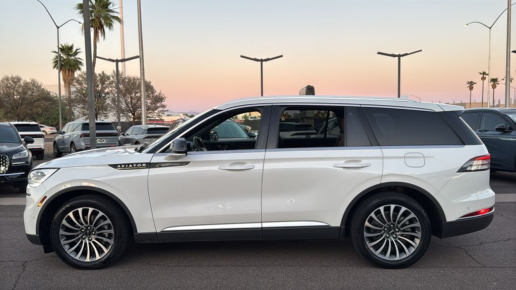 This Lincoln Aviator is equipped with Class IV Trailer Tow Package (4-Pin & 7-Pin Connectors, Blind Spot Information System, Class IV Hitch & Wiring, Smart Trailer Tow, and Trailer Sway Control), Elements Package Plus (Auto Air Refresh, Auto Heated/Ventilated Driver & Passenger Seats, Heated Steering Wheel, Heated VisioBlade Wipers, and Heated/Ventilated 2nd Row Outboard Seats), Equipment Group 201A (Head-Up Display and Phone As A Key), Illumination Package (Adaptive Pixel LED Headlamps, Illuminated Lincoln Star in Grille, and LED Fog Lamps), Lincoln Co-Pilot360 1.5 Plus (Active Park Assist 2.0, Evasive Steering Assist, Intelligent Adaptive Cruise Control, and Reverse Brake Assist), Lincoln Signature Certification Certified, 14 Speakers, 3.58 Axle Ratio, 3rd row seats: split-bench, 4-Wheel Disc Brakes, ABS brakes, Air Conditioning, All-Weather 1st & 2nd Row Floor Liners, Alloy wheels, AM/FM radio: SiriusXM, Audio memory, Auto High-beam Headlights, Auto-dimming door mirrors, Auto-dimming Rear-View mirror, Automatic temperature control, Brake assist, Bumpers: body-color, Compass, Delay-off headlights, Driver door bin, Driver vanity mirror, Dual front impact airbags, Dual front side impact airbags, Electronic Stability Control, Emergency communication system, Four wheel independent suspension, Front anti-roll bar, Front Bucket Seats, Front Center Armrest, Front dual zone A/C, Front reading lights, Full Rear Console, Fully automatic headlights, Garage door transmitter, Hands-Free Liftgate Delete, Heated door mirrors, Heated front seats, HVAC memory, Illuminated entry, Knee airbag, Leather steering wheel, Low tire pressure warning, Memory seat, Navigation System, Occupant sensing airbag, Outside temperature display, Overhead airbag, Overhead console, Panic alarm, Passenger door bin, Passenger vanity mirror, Power door mirrors, Power driver seat, Power Liftgate, Power moonroof: Panoramic Vista Roof, Power passenger seat, Power steering, Power windows, Premium Lthr Heated/Ventilated Fnt Captain's Chairs, Radio data system, Radio: Revel AM/FM Audio System w/14 Speakers, Rain sensing wipers, Rear air conditioning, Rear anti-roll bar, Rear audio controls, Rear dual zone A/C, Rear reading lights, Rear window defroster, Rear window wiper, Remote keyless entry, Security system, SiriusXM Radio, Speed control, Speed-Sensitive Wipers, Split folding rear seat, Spoiler, Steering wheel memory, Steering wheel mounted A/C controls, Steering wheel mounted audio controls, SYNC 3 Communication & Entertainment System, Tachometer, Telescoping steering wheel, Tilt steering wheel, Traction control, Trip computer, Turn signal indicator mirrors, Variably intermittent wipers, and Wheels: 20" Bright-Machined Aluminum.