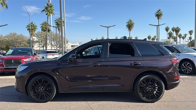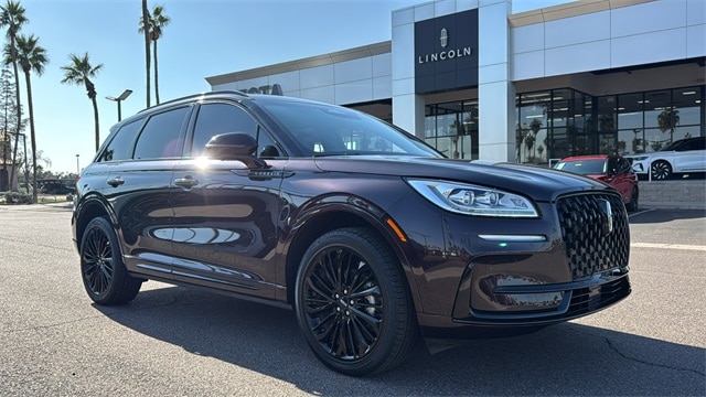 This Lincoln Corsair is equipped with Equipment Group 201A (60/40 EasyFold Rear Seat w/Power Seatback Release, Frameless Auto Dimming Rearview Mirror, Hands-Free Liftgate, Heated Sideview Mirrors, Heated Steering Wheel, Heated/Ventilated Driver & Front Passenger Seats, Phone As A Key (PAAK), Power Tilt/Telescoping Steering Column w/Memory, Rain Sensing Wipers, Universal Garage Door Opener, Windshield Wiper De-Icer, and Wireless Charging Pad), Jet Appearance Package (Body-Color Exterior Elements, Pillar Black Exterior Elements, and Wheels: 20" Black Aluminum), Lincoln Certified Pre-Owned Certified, 10 Speakers, 19" Bright Machined Aluminum Wheels, 3.81 Axle Ratio, 360-Degree Camera, 4-Wheel Disc Brakes, ABS brakes, Air Conditioning, Alloy wheels, AM/FM radio: SiriusXM, Auto High-beam Headlights, Auto-dimming Rear-View mirror, Automatic temperature control, Brake assist, Bumpers: body-color, Compass, Delay-off headlights, Driver door bin, Driver vanity mirror, Dual front impact airbags, Dual front side impact airbags, Electronic Stability Control, Emergency communication system: SYNC 4 911 Assist, Four wheel independent suspension, Front anti-roll bar, Front Bucket Seats, Front Center Armrest, Front dual zone A/C, Front reading lights, Front/Side/Rear Parking Sensors, Fully automatic headlights, Heated door mirrors, Heated front seats, Illuminated entry, Knee airbag, Leather steering wheel, Lincoln Premium Audio System Subwoofer Delete, Low tire pressure warning, Memory seat, Navigation system: Connected Navigation (3-year trial), Occupant sensing airbag, Outside temperature display, Overhead airbag, Overhead console, Panic alarm, Panoramic Vista Roof w/Power Shade, Passenger door bin, Passenger vanity mirror, Power door mirrors, Power driver seat, Power Liftgate, Power passenger seat, Power steering, Power windows, Premium Leather Heated Comfort Seats, Radio data system, Radio: Lincoln Premium Audio System w/MP3, Rear anti-roll bar, Rear Parking Sensors, Rear reading lights, Rear seat center armrest, Rear window defroster, Rear window wiper, Remote keyless entry, Reverse Brake Assist, Roof rack: rails only, Security system, SiriusXM Radio, Speed control, Speed-sensing steering, Speed-Sensitive Wipers, Split folding rear seat, Spoiler, Steering wheel mounted A/C controls, Steering wheel mounted audio controls, SYNC 4 Communications & Entertainment System, Tachometer, Telescoping steering wheel, Tilt steering wheel, Traction control, Trip computer, and Variably intermittent wipers.