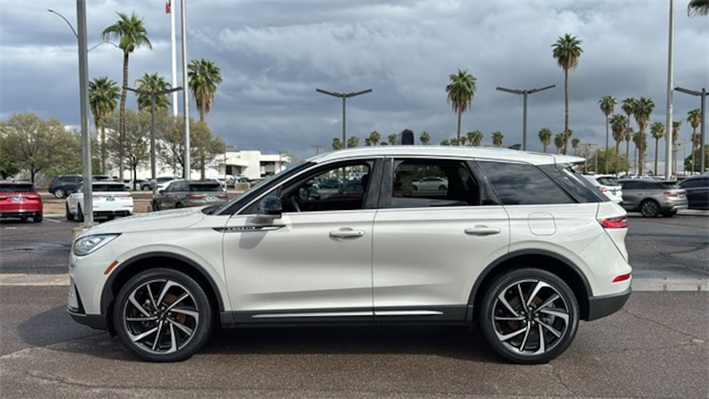 This Lincoln Corsair is equipped with Equipment Group 201A (60/40 EasyFold Rear Seat w/Power Seatback Release, Frameless Auto Dimming Rearview Mirror, Hands-Free Liftgate, Heated Sideview Mirrors, Heated Steering Wheel, Heated/Ventilated Driver & Front Passenger Seats, Phone As A Key (PAAK), Power Tilt/Telescoping Steering Column w/Memory, Rain Sensing Wipers, Universal Garage Door Opener, Windshield Wiper De-Icer, and Wireless Charging Pad), Lincoln Certified Pre-Owned Certified, 10 Speakers, 19" Bright Machined Aluminum Wheels, 3.81 Axle Ratio, 360-Degree Camera, 4-Wheel Disc Brakes, ABS brakes, Air Conditioning, Alloy wheels, AM/FM radio: SiriusXM, Auto High-beam Headlights, Auto-dimming Rear-View mirror, Automatic temperature control, Brake assist, Bumpers: body-color, Compass, Delay-off headlights, Driver door bin, Driver vanity mirror, Dual front impact airbags, Dual front side impact airbags, Electronic Stability Control, Emergency communication system: SYNC 4 911 Assist, Four wheel independent suspension, Front anti-roll bar, Front Bucket Seats, Front Center Armrest, Front dual zone A/C, Front reading lights, Front/Side/Rear Parking Sensors, Fully automatic headlights, Heated door mirrors, Heated front seats, Illuminated entry, Knee airbag, Leather steering wheel, Lincoln Premium Audio System Subwoofer Delete, Low tire pressure warning, Memory seat, Navigation system: Connected Navigation (3-year trial), Occupant sensing airbag, Outside temperature display, Overhead airbag, Overhead console, Panic alarm, Passenger door bin, Passenger vanity mirror, Power door mirrors, Power driver seat, Power Liftgate, Power passenger seat, Power steering, Power windows, Premium Leather Heated Comfort Seats, Radio data system, Radio: Lincoln Premium Audio System w/MP3, Rear anti-roll bar, Rear Parking Sensors, Rear reading lights, Rear seat center armrest, Rear window defroster, Rear window wiper, Remote keyless entry, Reverse Brake Assist, Roof rack: rails only, Security system, SiriusXM Radio, Speed control, Speed-sensing steering, Speed-Sensitive Wipers, Split folding rear seat, Spoiler, Steering wheel mounted A/C controls, Steering wheel mounted audio controls, SYNC 4 Communications & Entertainment System, Tachometer, Telescoping steering wheel, Tilt steering wheel, Traction control, Trip computer, Variably intermittent wipers, and Wheels: 20" Bright Machined Aluminum. Recent Arrival!