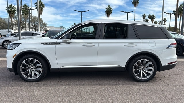 This Lincoln Aviator is equipped with Equipment Group 100A (Auto Air Refresh, Lincoln BlueCruise Equipped (4-Years Included), and Wireless Charging), 10 Speakers, 3rd row seats: split-bench, 4-Wheel Disc Brakes, ABS brakes, Adaptive suspension, Air Conditioning, Alloy wheels, AM/FM radio: SiriusXM, Apple CarPlay/Android Auto, Audio memory, Auto High-beam Headlights, Auto-dimming door mirrors, Auto-dimming Rear-View mirror, Automatic temperature control, Brake assist, Bumpers: body-color, Compass, Delay-off headlights, Driver door bin, Driver vanity mirror, Dual front impact airbags, Dual front side impact airbags, Electronic Stability Control, Emergency communication system: 911 Assist, Four wheel independent suspension, Front anti-roll bar, Front Bucket Seats, Front Center Armrest, Front dual zone A/C, Front reading lights, Fully automatic headlights, Garage door transmitter, Heated door mirrors, Heated front seats, Heated steering wheel, HVAC memory, Illuminated entry, Knee airbag, Leather steering wheel, Lincoln Digital Experience, Lincoln Soft Touch Heated/Ventilated Comfort Seats, Low tire pressure warning, Memory seat, Navigation system: Connected Navigation (1-year trial), Occupant sensing airbag, Outside temperature display, Overhead airbag, Overhead console, Panic alarm, Passenger door bin, Passenger vanity mirror, Power door mirrors, Power driver seat, Power Liftgate, Power moonroof: Panoramic Vista Roof, Power passenger seat, Power steering, Power windows, Radio data system, Radio: Lincoln Premium AM/FM/HD Audio System, Rain sensing wipers, Rear air conditioning, Rear anti-roll bar, Rear audio controls, Rear reading lights, Rear window defroster, Rear window wiper, Remote keyless entry, Security system, SiriusXM, Speed control, Speed-Sensitive Wipers, Split folding rear seat, Spoiler, Steering wheel memory, Steering wheel mounted A/C controls, Steering wheel mounted audio controls, Tachometer, Telescoping steering wheel, Tilt steering wheel, Traction control, Trip computer, Turn signal indicator mirrors, Variably intermittent wipers, Ventilated front seats, Wheels: 20" Magnetic Bright-Machined Aluminum, and Wheels: 21" Bright Machined Aluminum. Price includes: $2000 - Wishlist Bonus Cash. Exp. 01/02/2026 $5000 - Retail Customer Cash. Exp. 01/05/2026