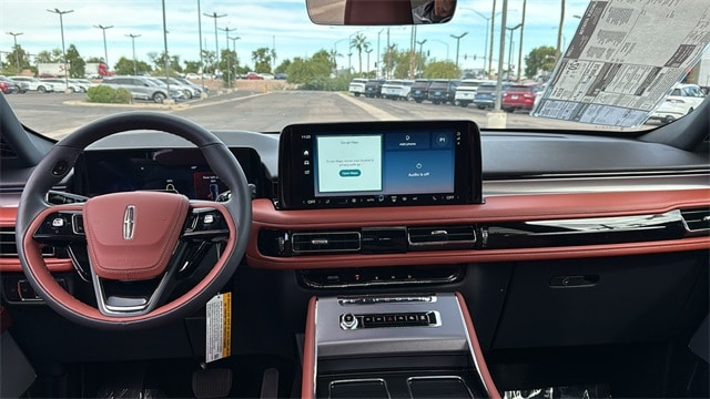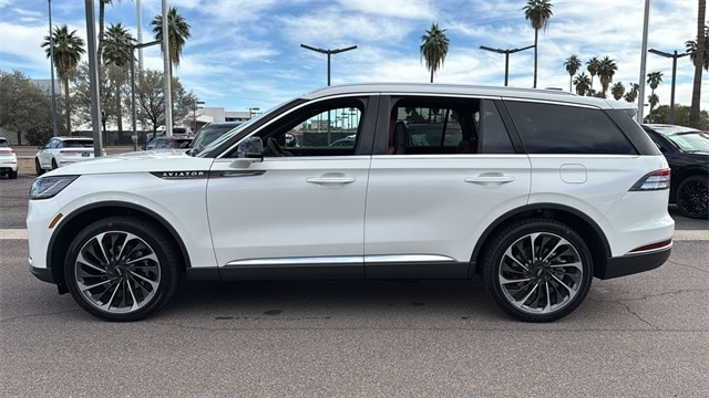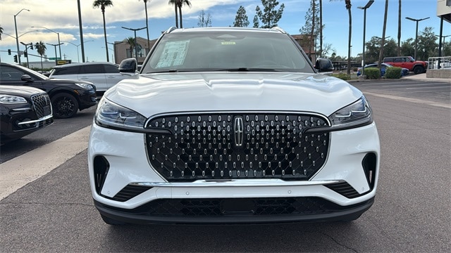 This Lincoln Aviator is equipped with Equipment Group 201A (Advanced Heads-Up Display, Auto Air Refresh, Lincoln BlueCruise Equipped (4-Years Included), Wheels: 22" Bright-Machined Aluminum, and Wireless Charging Pad), Illumination Package (Adaptive Dynamic Bending Lighting, Adaptive Pixel LED Headlamps, Illuminated Lincoln Star in Grille, Lincoln Dynamic Signature Lighting, and Speed Dependent Lighting), Luxury Package (30-Way Perfect Position Seats w/Active Motion, Heated & Ventilated Rear Seats, and Radio: Revel Ultima 3D Audio System w/28 Speakers), 14 Speakers, 3rd row seats: split-bench, 4-Wheel Disc Brakes, 40/Mini Console/40 Dual Captain's Chairs, ABS brakes, Adaptive suspension, Air Conditioning, Alloy wheels, AM/FM radio: SiriusXM, Apple CarPlay/Android Auto, Audio memory, Auto High-beam Headlights, Auto-dimming door mirrors, Auto-dimming Rear-View mirror, Automatic temperature control, Brake assist, Bumpers: body-color, Compass, Delay-off headlights, Driver door bin, Driver vanity mirror, Dual front impact airbags, Dual front side impact airbags, Electronic Stability Control, Emergency communication system: 911 Assist, Four wheel independent suspension, Front anti-roll bar, Front Bucket Seats, Front Center Armrest, Front dual zone A/C, Front reading lights, Full Rear Console, Fully automatic headlights, Garage door transmitter, Genuine wood console insert, Genuine wood dashboard insert, Heads-Up Display, Heated door mirrors, Heated front seats, Heated steering wheel, HVAC memory, Illuminated entry, Knee airbag, Leather steering wheel, Lincoln Digital Experience, Low tire pressure warning, Memory seat, Navigation system: Connected Navigation (1-year trial), Occupant sensing airbag, Outside temperature display, Overhead airbag, Overhead console, Panic alarm, Passenger door bin, Passenger vanity mirror, Power door mirrors, Power driver seat, Power Liftgate, Power moonroof: Panoramic Vista Roof, Power passenger seat, Power steering, Power windows, Premium Lthr Heated/Ventilated Fnt Captain's Chairs, Radio data system, Radio: Revel Audio System w/14 Speakers, Rain sensing wipers, Rear air conditioning, Rear anti-roll bar, Rear audio controls, Rear dual zone A/C, Rear reading lights, Rear window defroster, Rear window wiper, Remote keyless entry, Security system, SiriusXM, Speed control, Speed-Sensitive Wipers, Split folding rear seat, Spoiler, Steering wheel memory, Steering wheel mounted A/C controls, Steering wheel mounted audio controls, Tachometer, Telescoping steering wheel, Tilt steering wheel, Traction control, Trip computer, Turn signal indicator mirrors, Variably intermittent wipers, Ventilated front seats, and Wheels: 21" Bright-Machined Aluminum. Price includes: $2000 - Wishlist Bonus Cash. Exp. 01/02/2026 $5000 - Retail Customer Cash. Exp. 01/05/2026