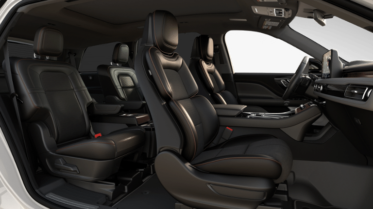 This Lincoln Aviator is equipped with Equipment Group 800A, Jet Appearance Package (Black Exterior Elements, Body-Color Exterior Elements, and Wheels: 22" Ebony Black Bright-Machined), 28 Speakers, 30-Way Perfect Position Seats w/Active Motion, 3rd row seats: split-bench, 4-Wheel Disc Brakes, ABS brakes, Adaptive suspension, Air Conditioning, Alloy wheels, AM/FM radio: SiriusXM, Apple CarPlay/Android Auto, Audio memory, Auto High-beam Headlights, Auto-dimming door mirrors, Auto-dimming Rear-View mirror, Automatic temperature control, Brake assist, Bumpers: body-color, Compass, Delay-off headlights, Driver door bin, Driver vanity mirror, Dual front impact airbags, Dual front side impact airbags, Electronic Stability Control, Emergency communication system: 911 Assist, Four wheel independent suspension, Front anti-roll bar, Front Bucket Seats, Front Center Armrest, Front dual zone A/C, Front reading lights, Full Rear Console, Fully automatic headlights, Garage door transmitter, Genuine wood console insert, Genuine wood dashboard insert, Head restraints memory, Heads-Up Display, Heated door mirrors, Heated front seats, Heated rear seats, Heated steering wheel, HVAC memory, Illuminated entry, Knee airbag, Leather steering wheel, Lincoln Digital Experience, Low tire pressure warning, Memory seat, Navigation system: Connected Navigation (1-year trial), Occupant sensing airbag, Outside temperature display, Overhead airbag, Overhead console, Panic alarm, Passenger door bin, Passenger vanity mirror, Power adjustable front head restraints, Power door mirrors, Power driver seat, Power Liftgate, Power moonroof: Panoramic Vista Roof, Power passenger seat, Power steering, Power windows, Radio data system, Radio: Revel Ultima 3D Audio System w/28 Speakers, Rain sensing wipers, Rear air conditioning, Rear anti-roll bar, Rear audio controls, Rear dual zone A/C, Rear reading lights, Rear window defroster, Rear window wiper, Remote keyless entry, Savannah Leather Heated/Ventilated Seats (76A), Security system, SiriusXM, Speed control, Speed-Sensitive Wipers, Split folding rear seat, Spoiler, Steering wheel memory, Steering wheel mounted A/C controls, Steering wheel mounted audio controls, Tachometer, Telescoping steering wheel, Tilt steering wheel, Traction control, Trip computer, Turn signal indicator mirrors, Variably intermittent wipers, Ventilated front seats, Ventilated rear seats, and Wheels: 22" Bright-Machined Aluminum. Price includes: $2000 - Wishlist Bonus Cash. Exp. 01/02/2026 $5000 - Retail Customer Cash. Exp. 01/05/2026