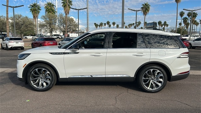 This Lincoln Aviator is equipped with Equipment Group 200A (Advanced Heads-Up Display, Auto Air Refresh, Lincoln BlueCruise Equipped (4-Years Included), and Wireless Charging Pad), Illumination Package (Adaptive Dynamic Bending Lighting, Adaptive Pixel LED Headlamps, Illuminated Lincoln Star in Grille, Lincoln Dynamic Signature Lighting, and Speed Dependent Lighting), 14 Speakers, 2nd Row Bench Seat, 3rd row seats: split-bench, 4-Wheel Disc Brakes, 40/Mini Console/40 Dual Captain's Chairs, ABS brakes, Adaptive suspension, Air Conditioning, Alloy wheels, AM/FM radio: SiriusXM, Apple CarPlay/Android Auto, Audio memory, Auto High-beam Headlights, Auto-dimming door mirrors, Auto-dimming Rear-View mirror, Automatic temperature control, Brake assist, Bumpers: body-color, Compass, Delay-off headlights, Driver door bin, Driver vanity mirror, Dual front impact airbags, Dual front side impact airbags, Electronic Stability Control, Emergency communication system: 911 Assist, Four wheel independent suspension, Front anti-roll bar, Front Bucket Seats, Front Center Armrest, Front dual zone A/C, Front reading lights, Fully automatic headlights, Garage door transmitter, Genuine wood console insert, Genuine wood dashboard insert, Heads-Up Display, Heated door mirrors, Heated front seats, Heated steering wheel, HVAC memory, Illuminated entry, Knee airbag, Leather steering wheel, Lincoln Digital Experience, Low tire pressure warning, Memory seat, Navigation system: Connected Navigation (1-year trial), Occupant sensing airbag, Outside temperature display, Overhead airbag, Overhead console, Panic alarm, Passenger door bin, Passenger vanity mirror, Power door mirrors, Power driver seat, Power Liftgate, Power moonroof: Panoramic Vista Roof, Power passenger seat, Power steering, Power windows, Premium Lthr Heated/Ventilated Fnt Captain's Chairs, Radio data system, Radio: Revel Audio System w/14 Speakers, Rain sensing wipers, Rear air conditioning, Rear anti-roll bar, Rear audio controls, Rear dual zone A/C, Rear reading lights, Rear window defroster, Rear window wiper, Remote keyless entry, Security system, SiriusXM, Speed control, Speed-Sensitive Wipers, Split folding rear seat, Spoiler, Steering wheel memory, Steering wheel mounted A/C controls, Steering wheel mounted audio controls, Tachometer, Telescoping steering wheel, Tilt steering wheel, Traction control, Trip computer, Turn signal indicator mirrors, Variably intermittent wipers, Ventilated front seats, and Wheels: 21" Bright-Machined Aluminum. Price includes: $1000 - Wishlist Bonus Cash. Exp. 01/05/2026 $5000 - Retail Customer Cash. Exp. 01/05/2026
