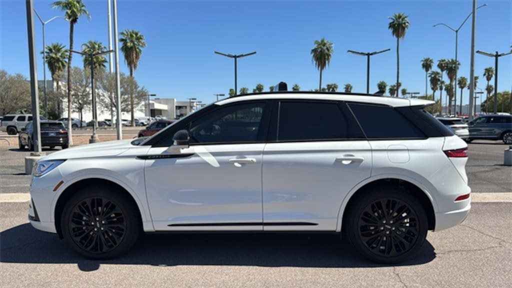 This Lincoln Corsair is equipped with Equipment Group 202A (2 Additional USB Ports in Rear of Center Console, 60/40 EasyFold Rear Seat w/Power Seatback Release, Auto Air Refresh (Ultra Fresh Cabin), Black Roof Rack Side Rails, Frameless Auto Dimming Rearview Mirror, Hands-Free Liftgate, Head-Up Display, Heated Rear Seat, Heated Sideview Mirrors, Heated Steering Wheel, Heated/Ventilated Driver & Front Passenger Seats, Lincoln BlueCruise (4 Years Included), Panoramic Vista Roof w/Power Shade, Phone As A Key (PAAK), Power Tilt/Telescoping Steering Column w/Memory, Radio: Revel Audio System w/HD Radio & MP3, Rain Sensing Wipers, Universal Garage Door Opener, Windshield Wiper De-Icer, and Wireless Charging Pad), Jet Appearance Package (Body-Color Exterior Elements, Pillar Black Exterior Elements, and Wheels: 20" Black Aluminum), 19" Bright Machined Aluminum Wheels, 4-Wheel Disc Brakes, 9 Speakers, ABS brakes, Air Conditioning, Alexa Built-In, Alloy wheels, AM/FM radio: SiriusXM with 360L, Apple CarPlay/Android Auto, Auto High-beam Headlights, Auto-dimming Rear-View mirror, Automatic temperature control, Brake assist, Bumpers: body-color, Compass, Delay-off headlights, Driver door bin, Driver State Detection, Driver vanity mirror, Dual front impact airbags, Dual front side impact airbags, Electronic Stability Control, Emergency communication system: 911 Assist, Four wheel independent suspension, Front anti-roll bar, Front Bucket Seats, Front Center Armrest, Front dual zone A/C, Front reading lights, Fully automatic headlights, Heated door mirrors, Heated front seats, Illuminated entry, Knee airbag, Leather steering wheel, Low tire pressure warning, Memory seat, Navigation system: Connected Navigation (4-year trial), Occupant sensing airbag, Outside temperature display, Overhead airbag, Overhead console, Panic alarm, Passenger door bin, Passenger vanity mirror, Perfect Position Seats (24-Way) w/Active Motion, Power door mirrors, Power driver seat, Power Liftgate, Power passenger seat, Power steering, Power windows, Premium Leather-Trimmed Heated Captain's Chairs, Radio data system, Radio: Lincoln Premium Audio System w/MP3, Rear anti-roll bar, Rear Parking Sensors, Rear reading lights, Rear seat center armrest, Rear window defroster, Rear window wiper, Remote keyless entry, Security system, SiriusXM w/360L Radio, Speed control, Speed-sensing steering, Speed-Sensitive Wipers, Split folding rear seat, Spoiler, Steering wheel mounted A/C controls, Steering wheel mounted audio controls, SYNC 4 Communications & Entertainment System, Tachometer, Telescoping steering wheel, Tilt steering wheel, Traction control, Trip computer, and Variably intermittent wipers.