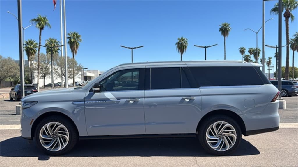 This Lincoln Navigator L is equipped with Equipment Group 202A Reserve II, Heavy-Duty Trailer Tow Package (26mm Engine Radiator and Trailer Brake Controller), 28 Speakers, 2nd Row Heated & Ventilated Dual Captain's Chair, 3rd row seats: split-bench, 4-Wheel Disc Brakes, ABS brakes, Adaptive suspension, Adjustable pedals, Air Conditioning, Alloy wheels, AM/FM radio: SiriusXM with 360L, Apple CarPlay/Android Auto, Audio memory, Auto High-beam Headlights, Auto Htd & Ventilated Premium Lthr Captain's Chair, Auto Start-Stop Technology, Auto tilt-away steering wheel, Auto-dimming door mirrors, Auto-dimming Rear-View mirror, Auto-leveling suspension, Automatic temperature control, Brake assist, Bumpers: body-color, Compass, Delay-off headlights, Driver door bin, Driver vanity mirror, Driver's Seat Mounted Armrest, Dual front impact airbags, Dual front side impact airbags, Electronic Stability Control, Emergency communication system: 911 Assist, Exterior Parking Camera Rear, Four wheel independent suspension, Front anti-roll bar, Front Bucket Seats, Front dual zone A/C, Front reading lights, Fully automatic headlights, Garage door transmitter, Heated door mirrors, Heated front seats, Heated rear seats, Heated steering wheel, HVAC memory, Illuminated entry, Leather steering wheel, Lincoln Connect, Lincoln Premium Connectivity, Low tire pressure warning, Memory seat, Navigation system: Connected Navigation (1-year trial), Occupant sensing airbag, Outside temperature display, Overhead airbag, Overhead console, Panic alarm, Passenger door bin, Passenger seat mounted armrest, Passenger vanity mirror, Pedal memory, Power adjustable front head restraints, Power adjustable rear head restraints, Power door mirrors, Power driver seat, Power moonroof, Power passenger seat, Power steering, Power windows, Radio data system, Radio: Revel Ultima 3D AM/FM/HD Audio System, Rain sensing wipers, Rear air conditioning, Rear anti-roll bar, Rear audio controls, Rear reading lights, Rear window defroster, Rear window wiper, Reclining 3rd row seat, Remote keyless entry, Security system, SiriusXM w/360L, Speed control, Speed-sensing steering, Speed-Sensitive Wipers, Split folding rear seat, Spoiler, Steering wheel memory, Steering wheel mounted audio controls, Tachometer, Telescoping steering wheel, Tilt steering wheel, Traction control, Trip computer, Turn signal indicator mirrors, Variably intermittent wipers, Ventilated front seats, and Wheels: 22" Dark Tarnished Aluminum.