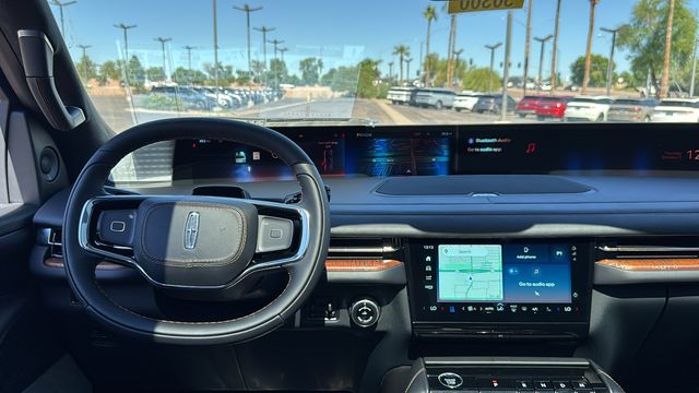 This Lincoln Navigator L is equipped with Equipment Group 800A Black Label, 28 Speakers, 3rd row seats: split-bench, 4-Wheel Disc Brakes, A/V remote, ABS brakes, Adaptive suspension, Adjustable pedals, Air Conditioning, All-Weather Flr Liners w/Fr & Rr Carpet Floor Mats, Alloy wheels, AM/FM radio: SiriusXM with 360L, Apple CarPlay/Android Auto, Audio memory, Auto High-beam Headlights, Auto Htd & Ventilated Opulence Lthr Capt Chair, Auto Start-Stop Technology, Auto tilt-away steering wheel, Auto-dimming door mirrors, Auto-dimming Rear-View mirror, Auto-leveling suspension, Automatic temperature control, Brake assist, Bumpers: body-color, Cargo Area Management System, Compass, Delay-off headlights, Driver door bin, Driver vanity mirror, Driver's Seat Mounted Armrest, Dual front impact airbags, Dual front side impact airbags, Electronic Stability Control, Emergency communication system: 911 Assist, Enlighten Theme, Exterior Parking Camera Rear, Four wheel independent suspension, Front anti-roll bar, Front Bucket Seats, Front dual zone A/C, Front reading lights, Fully automatic headlights, Garage door transmitter, Head restraints memory, Headphones, Heated door mirrors, Heated front seats, Heated rear seats, Heated steering wheel, HVAC memory, Illuminated entry, Leather steering wheel, Lincoln Connect, Lincoln Premium Connectivity, Low tire pressure warning, Memory seat, Navigation system: Connected Navigation (1-year trial), Occupant sensing airbag, Outside temperature display, Overhead airbag, Overhead console, Panic alarm, Passenger door bin, Passenger seat mounted armrest, Passenger vanity mirror, Pedal memory, Power adjustable front head restraints, Power adjustable rear head restraints, Power door mirrors, Power driver seat, Power moonroof, Power passenger seat, Power steering, Power windows, Radio data system, Radio: Revel Ultima 3D AM/FM/HD Audio System, Rain sensing wipers, Rear air conditioning, Rear anti-roll bar, Rear audio controls, Rear reading lights, Rear seat center armrest, Rear window defroster, Rear window wiper, Reclining 3rd row seat, Remote keyless entry, Security system, SiriusXM w/360L, Speed control, Speed-sensing steering, Speed-Sensitive Wipers, Split folding rear seat, Spoiler, Steering wheel memory, Steering wheel mounted audio controls, Tachometer, Telescoping steering wheel, Tilt steering wheel, Traction control, Trip computer, Turn signal indicator mirrors, Variably intermittent wipers, Ventilated front seats, Ventilated rear seats, and Wheels: 22" High-Gloss Ebony Aluminum.
