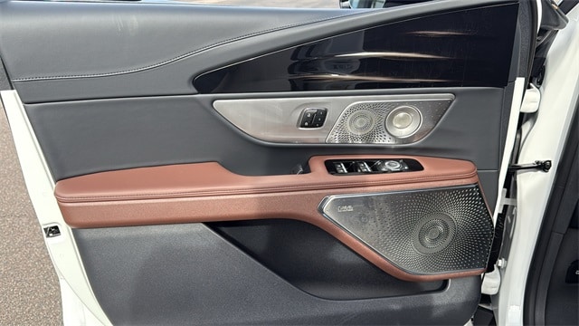This Lincoln Nautilus is equipped with Equipment Group 203A Reserve III (110V Power Converter, Auto Air Refresh, BlueCruise Equipped (4-Years Included), Digital Scent, Hands-Free Power Liftgate, Panoramic Vista Roof with Powershade, Premium Leather-Trimmed Heated/Ventilated Captain's Chairs, Radio: AM/FM Revel Ultima 3D Audio System, Rear Heated Seats with Switch Control, SiriusXM with 360L, and Wheels: 21" Bright Machined Aluminum), Lincoln Connectivity Package, 10 Speakers, 4-Wheel Disc Brakes, ABS brakes, Adaptive suspension, Air Conditioning, Alloy wheels, AM/FM radio: SiriusXM with 360L, Apple CarPlay/Android Auto, Auto High-beam Headlights, Auto tilt-away steering wheel, Auto-dimming Rear-View mirror, Automatic temperature control, Brake assist, Bumpers: body-color, Compass, Delay-off headlights, Driver door bin, Driver vanity mirror, Dual front impact airbags, Dual front side impact airbags, Electronic Stability Control, Emergency communication system: 911 Assist, Exterior Parking Camera Rear, Four wheel independent suspension, Front anti-roll bar, Front Bucket Seats, Front Center Armrest w/Storage, Front dual zone A/C, Front reading lights, Fully automatic headlights, Garage door transmitter, Heated door mirrors, Heated front seats, Heated steering wheel, Illuminated entry, Knee airbag, Leather steering wheel, Lincoln Digital Experience, Low tire pressure warning, Memory seat, Navigation System, Occupant sensing airbag, Outside temperature display, Overhead airbag, Overhead console, Panic alarm, Passenger door bin, Passenger vanity mirror, Power door mirrors, Power driver seat, Power Liftgate, Power passenger seat, Power steering, Power windows, Premium Leather Trimmed Captain's Chairs, Radio data system, Radio: AM/FM Revel Audio System, Rain sensing wipers, Rear anti-roll bar, Rear reading lights, Rear seat center armrest, Rear window defroster, Rear window wiper, Remote keyless entry, Security system, Speed control, Speed-sensing steering, Speed-Sensitive Wipers, Split folding rear seat, Spoiler, Steering wheel memory, Steering wheel mounted audio controls, Tachometer, Telescoping steering wheel, Tilt steering wheel, Traction control, Trip computer, Turn signal indicator mirrors, Variably intermittent wipers, and Ventilated front seats.