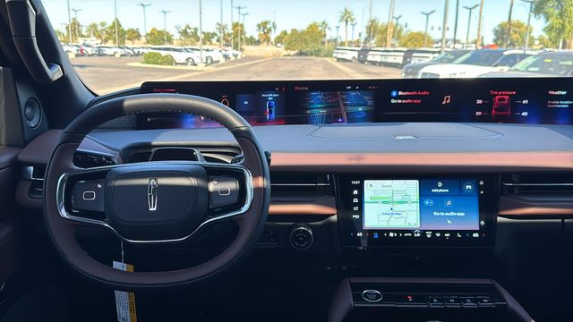 This Lincoln Navigator L is equipped with Equipment Group 202A Reserve II (Auto Heated/Ventilated Premium Leather Captain's Chairs, BlueCruise Equipped (4-Years Included), Lincoln App, Lincoln Digital Experience, Radio: Revel Ultima 3D Audio System, SiriusXM with 360L (3 Months Trial), and Wheels: 22" Dark Tarnished Aluminum), Heavy-Duty Trailer Tow Package (26mm Engine Radiator and Trailer Brake Controller), Lincoln Connectivity Package (4-Years Included), Lincoln Security Package, 28 Speakers, 2nd Row Heated & Ventilated Dual Captain's Chair, 3rd row seats: split-bench, 4-Wheel Disc Brakes, ABS brakes, Adaptive suspension, Air Conditioning, Alloy wheels, AM/FM radio: SiriusXM with 360L, Apple CarPlay/Android Auto, Audio memory, Auto High-beam Headlights, Auto Start-Stop Technology, Auto tilt-away steering wheel, Auto-dimming door mirrors, Auto-dimming Rear-View mirror, Auto-leveling suspension, Automatic temperature control, Brake assist, Bumpers: body-color, Compass, Delay-off headlights, Driver door bin, Driver vanity mirror, Driver's Seat Mounted Armrest, Dual front impact airbags, Dual front side impact airbags, Electronic Stability Control, Emergency communication system: 911 Assist, Exterior Parking Camera Rear, Four wheel independent suspension, Front anti-roll bar, Front Bucket Seats, Front dual zone A/C, Front reading lights, Fully automatic headlights, Garage door transmitter, Heated door mirrors, Heated front seats, Heated rear seats, Heated steering wheel, HVAC memory, Illuminated entry, Leather steering wheel, Low tire pressure warning, Memory seat, Navigation system: Connected Navigation (1-year trial), Occupant sensing airbag, Outside temperature display, Overhead airbag, Overhead console, Panic alarm, Passenger door bin, Passenger seat mounted armrest, Passenger vanity mirror, Power adjustable rear head restraints, Power door mirrors, Power driver seat, Power moonroof: Panoramic Vista Roof, Power passenger seat, Power steering, Power windows, Radio data system, Rain sensing wipers, Rear air conditioning, Rear anti-roll bar, Rear audio controls, Rear reading lights, Rear window defroster, Rear window wiper, Reclining 3rd row seat, Remote keyless entry, Security system, Speed control, Speed-sensing steering, Speed-Sensitive Wipers, Split folding rear seat, Spoiler, Steering wheel memory, Steering wheel mounted audio controls, Tachometer, Telescoping steering wheel, Tilt steering wheel, Traction control, Trip computer, Turn signal indicator mirrors, Variably intermittent wipers, and Ventilated front seats.