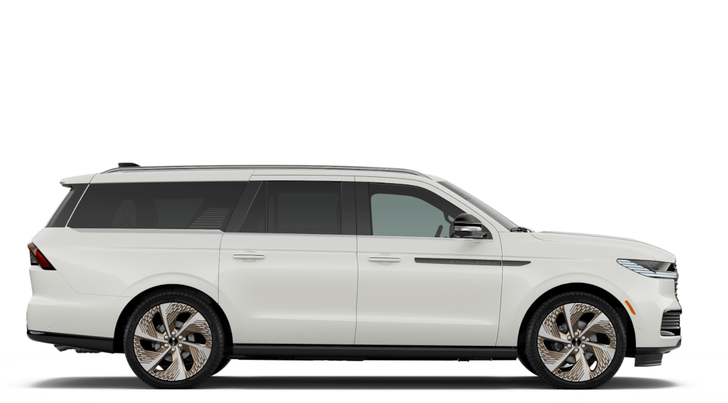 This Lincoln Navigator L is equipped with Equipment Group 801A Black Label (Auto Heated/Ventilated Opulence Leather Captain's Chairs, BlueCruise Equipped (4-Years Included), Lincoln App, Lincoln Digital Experience, Radiant Copper Grille, Radio: Revel Ultima 3D Audio System, SiriusXM with 360L (3 Months Trial), Special Edition Radiant Copper Badge, and Wheels: 24" Radiant Copper Aluminum), Lincoln Connectivity Package (4-Years Included), Lincoln Security Package, 28 Speakers, 3rd row seats: split-bench, 4-Wheel Disc Brakes, ABS brakes, Adaptive suspension, Adjustable pedals, Air Conditioning, Alloy wheels, AM/FM radio: SiriusXM with 360L, Apple CarPlay/Android Auto, Atmospheric Theme, Audio memory, Auto High-beam Headlights, Auto Start-Stop Technology, Auto tilt-away steering wheel, Auto-dimming door mirrors, Auto-dimming Rear-View mirror, Auto-leveling suspension, Automatic temperature control, Brake assist, Bumpers: body-color, Compass, Delay-off headlights, Driver door bin, Driver vanity mirror, Driver's Seat Mounted Armrest, Dual front impact airbags, Dual front side impact airbags, Electronic Stability Control, Emergency communication system: 911 Assist, Enlighten Theme, Exterior Parking Camera Rear, Four wheel independent suspension, Front anti-roll bar, Front Bucket Seats, Front dual zone A/C, Front reading lights, Fully automatic headlights, Garage door transmitter, Head restraints memory, Heated door mirrors, Heated front seats, Heated rear seats, Heated steering wheel, HVAC memory, Illuminated entry, Leather steering wheel, Lincoln Play (rear Seat Entertainment System), Low tire pressure warning, Memory seat, Navigation system: Connected Navigation (1-year trial), Occupant sensing airbag, Outside temperature display, Overhead airbag, Overhead console, Panic alarm, Passenger door bin, Passenger seat mounted armrest, Passenger vanity mirror, Pedal memory, Power adjustable front head restraints, Power adjustable rear head restraints, Power door mirrors, Power driver seat, Power moonroof: Panoramic Vista Roof, Power passenger seat, Power steering, Power windows, Radio data system, Rain sensing wipers, Rear air conditioning, Rear anti-roll bar, Rear audio controls, Rear reading lights, Rear seat center armrest, Rear window defroster, Rear window wiper, Reclining 3rd row seat, Remote keyless entry, Security system, SiriusXM with 360L (4-Years Plan), Speed control, Speed-sensing steering, Speed-Sensitive Wipers, Split folding rear seat, Spoiler, Steering wheel memory, Steering wheel mounted audio controls, Tachometer, Telescoping steering wheel, Tilt steering wheel, Traction control, Trip computer, Turn signal indicator mirrors, Variably intermittent wipers, Ventilated front seats, Ventilated rear seats, and Wheels: 22" High-Gloss Ebony Aluminum.