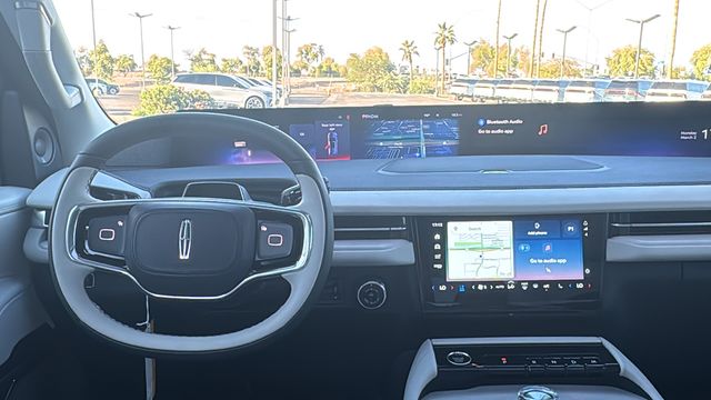 This Lincoln Navigator is equipped with Equipment Group 202A Reserve II (Auto Heated/Ventilated Premium Leather Captain's Chairs, BlueCruise Equipped (4-Years Included), Lincoln App, Lincoln Digital Experience, Radio: Revel Ultima 3D Audio System, SiriusXM with 360L (3 Months Trial), and Wheels: 22" Dark Tarnished Aluminum), Heavy-Duty Trailer Tow Package (26mm Engine Radiator and Trailer Brake Controller), Lincoln Connectivity Package (4-Years Included), Lincoln Security Package, 4WD, Med Lt Space Gry Auto Hea Leather, 28 Speakers, 2nd Row Heated & Ventilated Dual Captain's Chair, 3rd row seats: split-bench, 4-Wheel Disc Brakes, ABS brakes, Adaptive suspension, Air Conditioning, Alloy wheels, AM/FM radio: SiriusXM with 360L, Apple CarPlay/Android Auto, Audio memory, Auto High-beam Headlights, Auto Start-Stop Technology, Auto tilt-away steering wheel, Auto-dimming door mirrors, Auto-dimming Rear-View mirror, Auto-leveling suspension, Automatic temperature control, Brake assist, Bumpers: body-color, Compass, Delay-off headlights, Driver door bin, Driver vanity mirror, Driver's Seat Mounted Armrest, Dual front impact airbags, Dual front side impact airbags, Electronic Stability Control, Emergency communication system: 911 Assist, Exterior Parking Camera Rear, Four wheel independent suspension, Front anti-roll bar, Front Bucket Seats, Front dual zone A/C, Front reading lights, Fully automatic headlights, Garage door transmitter, Heated door mirrors, Heated front seats, Heated rear seats, Heated steering wheel, HVAC memory, Illuminated entry, Leather steering wheel, Low tire pressure warning, Memory seat, Navigation system: Connected Navigation (1-year trial), Occupant sensing airbag, Outside temperature display, Overhead airbag, Overhead console, Panic alarm, Passenger door bin, Passenger seat mounted armrest, Passenger vanity mirror, Power adjustable rear head restraints, Power door mirrors, Power driver seat, Power moonroof: Panoramic Vista Roof, Power passenger seat, Power steering, Power windows, Radio data system, Rain sensing wipers, Rear air conditioning, Rear anti-roll bar, Rear audio controls, Rear reading lights, Rear window defroster, Rear window wiper, Reclining 3rd row seat, Remote keyless entry, Security system, SiriusXM with 360L (4-Years Plan), Speed control, Speed-sensing steering, Speed-Sensitive Wipers, Split folding rear seat, Spoiler, Steering wheel memory, Steering wheel mounted audio controls, Tachometer, Telescoping steering wheel, Tilt steering wheel, Traction control, Trip computer, Turn signal indicator mirrors, Variably intermittent wipers, and Ventilated front seats.