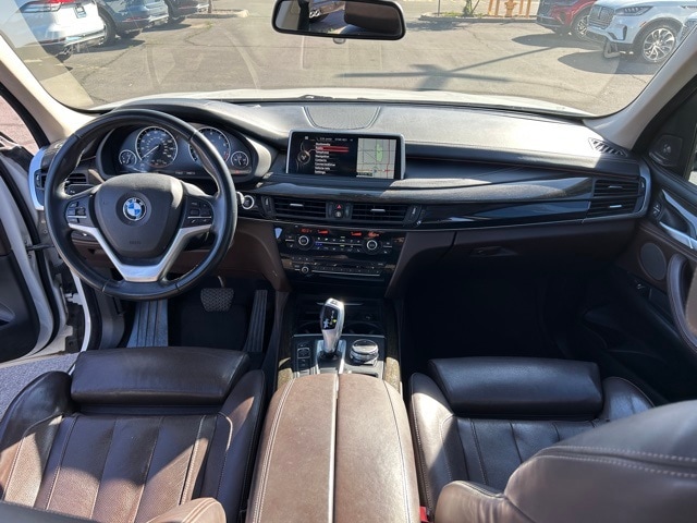 This BMW X5 is equipped with Mocha Interior Design Package (Nappa Leather Upholstery and Poplar Wood Trim), Mocha Leather, 10 Speakers, 3.154 Axle Ratio, 4-Wheel Disc Brakes, 4-Zone Automatic Climate Control, ABS brakes, Active Blind Spot Detection, Active Driving Assistant, Air Conditioning, Alloy wheels, AM/FM radio, Anti-Theft AM/FM Stereo w/CD/MP3, Anti-whiplash front head restraints, Auto tilt-away steering wheel, Auto-dimming door mirrors, Auto-dimming Rear-View mirror, Automatic temperature control, Brake assist, Bumpers: body-color, CD player, Comfort Access Keyless Entry, Delay-off headlights, Driver door bin, Driver vanity mirror, Dual front impact airbags, Dual front side impact airbags, Electronic Stability Control, Emergency communication system: BMW Assist eCall, Fineline Oak Wood Trim, Four wheel independent suspension, Front anti-roll bar, Front Bucket Seats, Front Center Armrest, Front dual zone A/C, Front fog lights, Front reading lights, Front Ventilated Seats, Fully automatic headlights, Garage door transmitter, Genuine wood console insert, Genuine wood dashboard insert, Genuine wood door panel insert, harman/kardon Surround Sound System, Head restraints memory, Head-Up Display, Heated door mirrors, Heated Front Seats, Heated front seats, Hi-Fi Sound System, High intensity discharge headlights: Bi-xenon, Illuminated entry, Low tire pressure warning, Lumbar Support, Luxury Line-Specific Design Elements, Memory seat, Multi-Contour Seats, Navigation System, Navigation System w/Touchpad, Occupant sensing airbag, Outside temperature display, Overhead airbag, Overhead console, Panic alarm, Passenger door bin, Passenger vanity mirror, Power adjustable front head restraints, Power door mirrors, Power driver seat, Power Front Seats w/Driver Seat Memory, Power moonroof, Power passenger seat, Power steering, Power windows, Radio data system, Rain sensing wipers, Rear anti-roll bar, Rear Manual Side Window Shades, Rear reading lights, Rear seat center armrest, Rear window defroster, Rear window wiper, Rear-view Camera, Remote keyless entry, Roof rack: rails only, Satellite Radio w/1 Year Subscription, Satin Aluminum Roof Rails, Security system, Sensatec Leatherette Upholstery, Soft-Close Automatic Doors, Speed control, Speed Limit Information, Speed-sensing steering, Speed-Sensitive Wipers, Split folding rear seat, Spoiler, Sport steering wheel, Steering wheel memory, Steering wheel mounted A/C controls, Steering wheel mounted audio controls, Surround View, Tachometer, Telescoping steering wheel, Tilt steering wheel, Traction control, Trip computer, Turn signal indicator mirrors, Variably intermittent wipers, Weather band radio, Wheels: 18" x 8.5" Light Alloy (Style 446), and Wheels: 20" Y-Spoke Lt Alloy (Style 451) Recent Arrival!