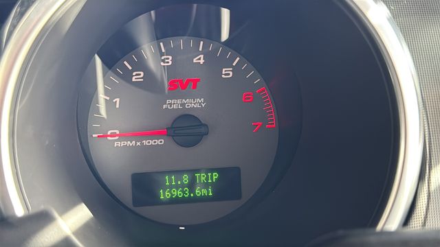 This Ford Mustang is equipped with 5.4L V8 DOHC Supercharged, 18" x 9.5" Bright Machined Aluminum Wheels, 4-Wheel Disc Brakes, 8 Speakers, ABS brakes, Air Conditioning, Alloy wheels, AM/FM radio, Bumpers: body-color, CD player, Driver door bin, Driver vanity mirror, Dual front impact airbags, Dual front side impact airbags, Front anti-roll bar, Front Bucket Seats, Front Center Armrest, Front fog lights, Front reading lights, Front wheel independent suspension, Illuminated entry, Leather Shift Knob, Leather Sport Bucket Seats, Low tire pressure warning, Occupant sensing airbag, Panic alarm, Passenger door bin, Passenger vanity mirror, Power door mirrors, Power driver seat, Power steering, Power windows, Premium audio system: Shaker 500, Radio data system, Rear anti-roll bar, Rear window defroster, Remote keyless entry, Security system, Shaker 500 AM/FM Stereo w/CDx6/MP3, Speed control, Split folding rear seat, Spoiler, Tachometer, Tilt steering wheel, Traction control, Trip computer, and Variably intermittent wipers. Odometer is 2909 miles below market average!