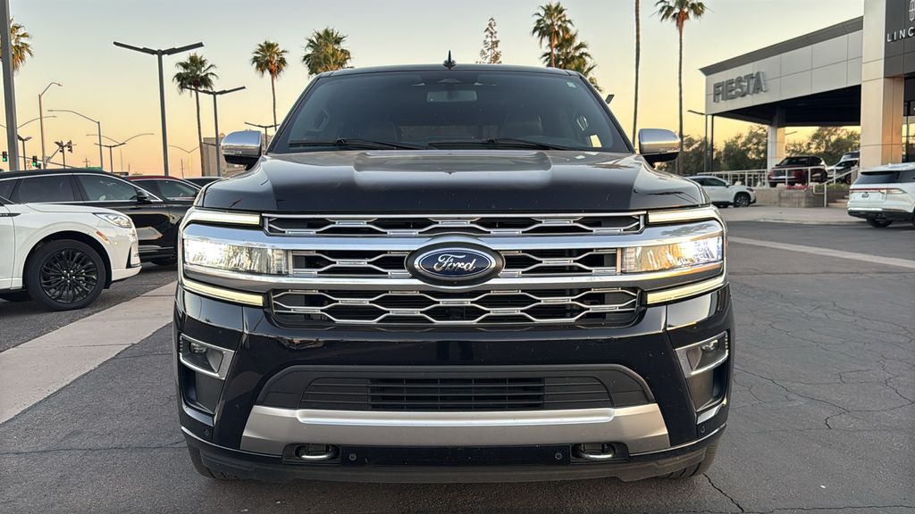 This Ford Expedition is equipped with Equipment Group 600A Standard Package, Heavy-Duty Trailer Tow Package (26mm Engine Radiator, 3.73 Axle Ratio, 360-Degree Camera w/Trailer Reverse Guidance, Integrated Trailer Brake Controller, and Pro Trailer Backup Assist), 4WD, 1st & 2nd Row Floor Liners w/Carpet Mats, 22 Speakers, 3.31 Axle Ratio, 3rd row seats: split-bench, 4-Wheel Disc Brakes, ABS brakes, Active Park Assist 2.0 Removal, Adaptive suspension, Adjustable pedals, Air Conditioning, Alloy wheels, AM/FM radio: SiriusXM with 360L, Auto High-beam Headlights, Auto-dimming door mirrors, Auto-dimming Rear-View mirror, Automatic temperature control, Black Roof-Rail Crossbars, Brake assist, Bumpers: body-color, Compass, ControlTrac w/3.73 Axle Ratio, Delay-off headlights, Driver door bin, Driver vanity mirror, Dual front impact airbags, Dual front side impact airbags, Electronic Stability Control, Emergency communication system: SYNC 4 911 Assist, Exterior Parking Camera Rear, Four wheel independent suspension, Front anti-roll bar, Front Bucket Seats, Front Center Armrest, Front dual zone A/C, Front fog lights, Front reading lights, Fully automatic headlights, Garage door transmitter, Genuine wood console insert, Genuine wood dashboard insert, Genuine wood door panel insert, Hands-Free Foot-Activated Liftgate Removal (DISC), Heated door mirrors, Heated front seats, Heated rear seats, Heated steering wheel, Htd/Ventilated Prem Lthr Front Captain's Chairs (DISC), Illuminated entry, Leather steering wheel, Low tire pressure warning, Memory seat, Navigation system: Connected Navigation, Occupant sensing airbag, Outside temperature display, Overhead airbag, Overhead console, Panic alarm, Passenger door bin, Passenger vanity mirror, Pedal memory, Power door mirrors, Power driver seat, Power Liftgate, Power moonroof, Power passenger seat, Power steering, Power windows, Radio data system, Radio: B&O Unleashed Sound System by Bang & Olufsen, Rain sensing wipers, Rear air conditioning, Rear anti-roll bar, Rear audio controls, Rear reading lights, Rear window defroster, Rear window wiper, Reclining 3rd row seat, Remote keyless entry, Second Row Power Windows Removal, Security system, SiriusXM w/360L, Speed control, Speed-sensing steering, Speed-Sensitive Wipers, Split folding rear seat, Spoiler, Steering wheel memory, Steering wheel mounted audio controls, SYNC 4 w/Enhanced Voice Recognition, Tachometer, Telescoping steering wheel, Tilt steering wheel, Traction control, Trip computer, Turn signal indicator mirrors, Variably intermittent wipers, Ventilated front seats, Voltmeter, Wheels: 22" 12-Spoke Polished Aluminum, and Wheels: 22" 6-Spoke Polished Aluminum. Recent Arrival! Odometer is 6376 miles below market average!