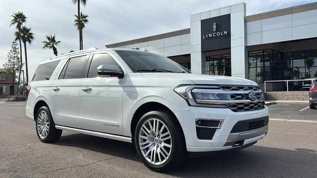 This Ford Expedition Max is equipped with Equipment Group 600A Standard Package, 1st & 2nd Row Floor Liners w/Carpet Mats, 22 Speakers, 3.31 Axle Ratio, 3.73 Axle Ratio, 3rd row seats: split-bench, 4-Wheel Disc Brakes, ABS brakes, Active Park Assist 2.0 Removal, Adaptive suspension, Adjustable pedals, Air Conditioning, Alloy wheels, AM/FM radio: SiriusXM with 360L, Auto High-beam Headlights, Auto-dimming door mirrors, Auto-dimming Rear-View mirror, Automatic temperature control, Brake assist, Bumpers: body-color, Compass, Continuous Controlled Damping (CCD), Delay-off headlights, Driver door bin, Driver vanity mirror, Dual front impact airbags, Dual front side impact airbags, Electronic Stability Control, Emergency communication system: SYNC 4 911 Assist, Exterior Parking Camera Rear, Four wheel independent suspension, Front anti-roll bar, Front Bucket Seats, Front Center Armrest, Front dual zone A/C, Front fog lights, Front reading lights, Fully automatic headlights, Garage door transmitter, Genuine wood console insert, Genuine wood dashboard insert, Genuine wood door panel insert, Hands-Free Foot-Activated Liftgate Removal (DISC), Heated door mirrors, Heated front seats, Heated rear seats, Heated steering wheel, Htd/Ventilated Prem Lthr Front Captain's Chairs (DISC), Illuminated entry, Leather steering wheel, Low tire pressure warning, Memory seat, Navigation system: Connected Navigation, Occupant sensing airbag, Outside temperature display, Overhead airbag, Overhead console, Panic alarm, Passenger door bin, Passenger vanity mirror, Pedal memory, Power door mirrors, Power driver seat, Power Liftgate, Power moonroof, Power passenger seat, Power steering, Power windows, Radio data system, Radio: B&O Unleashed Sound System by Bang & Olufsen, Rain sensing wipers, Rear air conditioning, Rear anti-roll bar, Rear audio controls, Rear reading lights, Rear window defroster, Rear window wiper, Reclining 3rd row seat, Remote keyless entry, Second Row Power Windows Removal, Security system, SiriusXM w/360L, Speed control, Speed-sensing steering, Speed-Sensitive Wipers, Split folding rear seat, Spoiler, Steering wheel memory, Steering wheel mounted audio controls, SYNC 4 w/Enhanced Voice Recognition, Tachometer, Telescoping steering wheel, Tilt steering wheel, Traction control, Trip computer, Turn signal indicator mirrors, Variably intermittent wipers, Ventilated front seats, Voltmeter, and Wheels: 22" 12-Spoke Polished Aluminum. Recent Arrival! Odometer is 16108 miles below market average!