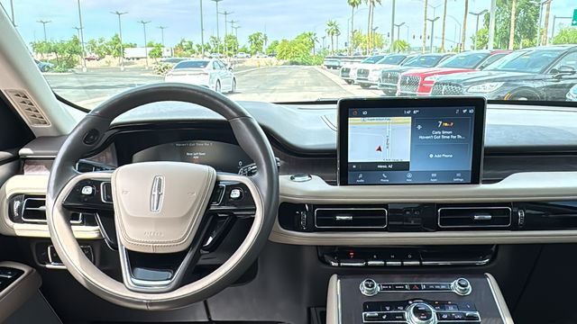 This Lincoln Aviator is equipped with Class IV Trailer Tow Package (250 Amps Alternator, 4-Pin & 7-Pin Connectors, Blind Spot Detection w/Cross Traffic Alert, Class IV Hitch & Wiring, Smart Trailer Tow, and Trailer Sway Control), Convenience Package (Head-Up Display, Phone As A Key, Soft Close Doors, and Wireless Charging Pad), Elements Package Plus (Heated Steering Wheel, Heated VisioBlade Wipers, Heated/Ventilated 2nd Row Outboard Seats, and Heated/Ventilated Driver & Passenger Seats), Equipment Group 201A (Panoramic Vista Roof w/Power Shade), Lincoln Co-Pilot360 Plus (Active Park Assist Plus, Adaptive Cruise Control w/Traffic Jam Assist, Evasive Steering Assist, and Reverse Brake Assist), Luxury Package (30-Way Perfect Position Seats w/Active Motion, Radio: Revel Ultima 3D Audio System w/28 Speakers, and Rear Door Sunshades), 14 Speakers, 3.58 Axle Ratio, 3rd row seats: split-bench, 4-Wheel Disc Brakes, ABS brakes, Air Conditioning, Alloy wheels, AM/FM radio: SiriusXM, Audio memory, Auto High-beam Headlights, Auto-dimming door mirrors, Auto-dimming Rear-View mirror, Automatic temperature control, Brake assist, Bumpers: body-color, Compass, Delay-off headlights, Driver door bin, Driver vanity mirror, Dual front impact airbags, Dual front side impact airbags, Electronic Stability Control, Emergency communication system: SYNC 3 911 Assist, Four wheel independent suspension, Front anti-roll bar, Front Bucket Seats, Front Center Armrest, Front dual zone A/C, Front fog lights, Front reading lights, Full Rear Console, Fully automatic headlights, Garage door transmitter, Heated door mirrors, Heated front seats, HVAC memory, Illuminated entry, Knee airbag, Low tire pressure warning, Memory seat, Navigation System, Occupant sensing airbag, Outside temperature display, Overhead airbag, Overhead console, Panic alarm, Passenger door bin, Passenger vanity mirror, Power door mirrors, Power driver seat, Power Liftgate, Power passenger seat, Power steering, Power windows, Premium Leather Enhanced Micro-Perforated Seats, Radio data system, Radio: Revel AM/FM Audio System w/14 Speakers, Rain sensing wipers, Rear air conditioning, Rear anti-roll bar, Rear audio controls, Rear dual zone A/C, Rear reading lights, Rear window defroster, Rear window wiper, Remote keyless entry, Security system, SiriusXM Radio, Speed control, Speed-Sensitive Wipers, Split folding rear seat, Spoiler, Steering wheel memory, Steering wheel mounted A/C controls, Steering wheel mounted audio controls, SYNC 3 Communication & Entertainment System, Tachometer, Telescoping steering wheel, Tilt steering wheel, Traction control, Trip computer, Turn signal indicator mirrors, Variably intermittent wipers, Ventilated front seats, and Wheels: 20" Bright Machined Aluminum. Recent Arrival! Odometer is 32881 miles below market average!