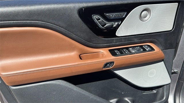 This Lincoln Aviator is equipped with Elements Package Plus (Auto Air Refresh, Auto Heated/Ventilated Driver & Passenger Seats, Heated Steering Wheel, Heated VisioBlade Wipers, and Heated/Ventilated 2nd Row Outboard Seats), Equipment Group 201A, Lincoln Co-Pilot360 Plus (Active Park Assist Plus, Adaptive Cruise Control w/Traffic Jam Assist, Evasive Steering Assist, and Reverse Brake Assist), Luxury Package (30-Way Perfect Position Seats w/Active Motion, Radio: Revel Ultima 3D Audio System w/28 Speakers, and Rear Door Sunshades), 14 Speakers, 2nd Row Bench Seat, 3.58 Axle Ratio, 3rd row seats: split-bench, 4-Wheel Disc Brakes, ABS brakes, Air Conditioning, Alloy wheels, AM/FM radio: SiriusXM, Audio memory, Auto High-beam Headlights, Auto-dimming door mirrors, Auto-dimming Rear-View mirror, Automatic temperature control, Brake assist, Bumpers: body-color, Cargo Area Cover, Compass, Delay-off headlights, Driver door bin, Driver vanity mirror, Dual front impact airbags, Dual front side impact airbags, Electronic Stability Control, Emergency communication system, Four wheel independent suspension, Front anti-roll bar, Front Bucket Seats, Front Center Armrest, Front dual zone A/C, Front fog lights, Front reading lights, Fully automatic headlights, Garage door transmitter, Heated door mirrors, Heated front seats, HVAC memory, Illuminated entry, Knee airbag, Low tire pressure warning, Memory seat, Navigation System, Occupant sensing airbag, Outside temperature display, Overhead airbag, Overhead console, Panic alarm, Passenger door bin, Passenger vanity mirror, Power door mirrors, Power driver seat, Power Liftgate, Power moonroof: Panoramic Vista Roof, Power passenger seat, Power steering, Power windows, Premium Lthr Heated/Ventilated Fnt Captain's Chairs, Radio data system, Radio: Revel AM/FM Audio System w/14 Speakers, Rain sensing wipers, Rear air conditioning, Rear anti-roll bar, Rear audio controls, Rear dual zone A/C, Rear reading lights, Rear window defroster, Rear window wiper, Remote keyless entry, Security system, SiriusXM, Speed control, Speed-Sensitive Wipers, Split folding rear seat, Spoiler, Steering wheel memory, Steering wheel mounted A/C controls, Steering wheel mounted audio controls, SYNC 3 Communication & Entertainment System, Tachometer, Telescoping steering wheel, Tilt steering wheel, Traction control, Trip computer, Turn signal indicator mirrors, Variably intermittent wipers, and Wheels: 20" Bright-Machined Aluminum.
