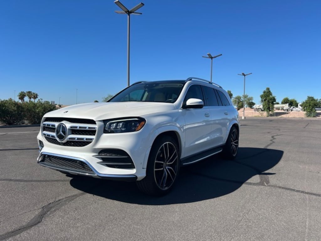 This Mercedes-Benz GLS is equipped with 13 Speakers, 3.27 Axle Ratio, 3rd row seats: split-bench, 4-Wheel Disc Brakes, 7-Seat Configuration, ABS brakes, Active Brake Assist w/Cross-Traffic Function, Adaptive suspension, Air Conditioning, Alloy wheels, AM/FM radio: SiriusXM, Apple CarPlay®/Android Auto®, Auto High-beam Headlights, Auto tilt-away steering wheel, Auto-dimming door mirrors, Auto-dimming Rear-View mirror, Auto-leveling suspension, Automatic temperature control, Brake assist, Bumpers: body-color, Child-Seat-Sensing Airbag, Compass, Delay-off headlights, Driver door bin, Driver vanity mirror, Dual front impact airbags, Dual front side impact airbags, Electronic Stability Control, Emergency communication system: eCall Emergency System, Four wheel independent suspension, Front anti-roll bar, Front Bucket Seats, Front Center Armrest w/Storage, Front dual zone A/C, Front reading lights, Fully automatic headlights, Garage door transmitter: HomeLink, Genuine wood console insert, Genuine wood dashboard insert, Genuine wood door panel insert, Head restraints memory, Heated and Ventilated Power Front Seats w/Memory, Heated door mirrors, Heated front seats, Illuminated entry, Knee airbag, Low tire pressure warning, MB-Tex Upholstery, Memory seat, Navigation system: MB Navigation, Occupant sensing airbag, Outside temperature display, Overhead airbag, Overhead console, Panic alarm, Passenger door bin, Passenger vanity mirror, Power adjustable front head restraints, Power door mirrors, Power driver seat, Power Liftgate, Power moonroof, Power passenger seat, Power steering, Power windows, Premium audio system: MBUX, Radio: MBUX Multimedia System, Rain sensing wipers, Rear air conditioning, Rear anti-roll bar, Rear dual zone A/C, Rear fog lights, Rear reading lights, Rear seat center armrest, Rear window defroster, Rear window wiper, Remote keyless entry, Roof rack: rails only, Security system, Speed control, Speed-sensing steering, Speed-Sensitive Wipers, Split folding rear seat, Spoiler, Steering wheel memory, Steering wheel mounted audio controls, Tachometer, Telescoping steering wheel, Tilt steering wheel, Traction control, Trip computer, Turn signal indicator mirrors, Variably intermittent wipers, Ventilated front seats, Weather band radio, and Wheels: 20" 8-Spoke. Recent Arrival!