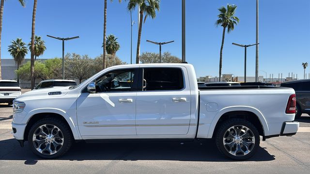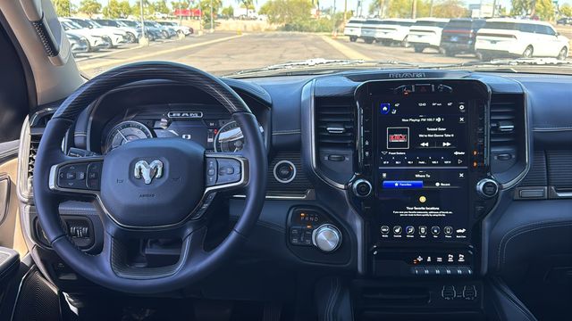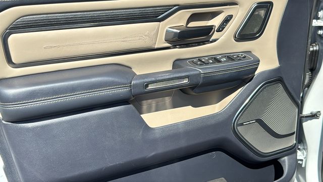 This Ram 1500 is equipped with Body Color Bumper Group (Body Color Front Bumper and Body Color Rear Bumper w/Step Pads), Limited Level 1 Equipment Group (Adaptive Cruise Control w/Stop & Go, Full Speed Forward Collision Warning Plus, Lane Keep Assist, Parallel & Perp Park Assist w/Stop, and Ventilated Rear Seats), Quick Order Package 25M Limited, 10 Speakers, 3.21 Rear Axle Ratio, 3.92 Rear Axle Ratio, 33 Gallon Fuel Tank, 4-Wheel Disc Brakes, 48V Belt Starter Generator, ABS brakes, Adjustable pedals, Air Conditioning, Alloy wheels, AM/FM radio: SiriusXM with 360L, Apple CarPlay/Android Auto, Audio memory, Auto High-beam Headlights, Auto-dimming door mirrors, Auto-dimming Rear-View mirror, Auto-leveling suspension, Automatic temperature control, Bodyside moldings, Brake assist, Bumpers: chrome, Compass, Delay-off headlights, Driver door bin, Driver vanity mirror, Dual front impact airbags, Dual front side impact airbags, Electronic Stability Control, Emergency communication system: SiriusXM Guardian, Front anti-roll bar, Front Bucket Seats, Front Center Armrest w/Storage, Front dual zone A/C, Front fog lights, Front reading lights, Front wheel independent suspension, Fully automatic headlights, Garage door transmitter, Genuine wood console insert, Genuine wood dashboard insert, Genuine wood door panel insert, Heated door mirrors, Heated front seats, Heated rear seats, Heated steering wheel, Illuminated entry, Leather steering wheel, Low tire pressure warning, Manufacturer's Statement of Origin, Memory seat, Navigation System, Occupant sensing airbag, Outside temperature display, Overhead airbag, Overhead console, Panic alarm, ParkView Rear Back-Up Camera, Passenger door bin, Passenger vanity mirror, Pedal memory, Power door mirrors, Power driver seat, Power passenger seat, Power steering, Power windows, Premium Leather Trimmed Bucket Seats, Radio data system, Radio: Uconnect 12 w/Navigation, Rain sensing wipers, Rear anti-roll bar, Rear seat center armrest, Rear step bumper, Rear window defroster, Remote keyless entry, Security system, Speed control, Split folding rear seat, Steering wheel mounted audio controls, Tachometer, Telescoping steering wheel, Tilt steering wheel, Traction control, Trip computer, Turn signal indicator mirrors, Variably intermittent wipers, Ventilated front seats, Voltmeter, Wheels: 20" x 9" Polished w/Inserts, and Wheels: 22" x 9" Polish/Painted w/Inserts. Odometer is 23902 miles below market average!